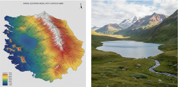 更神奇的是,纳米香蕉似乎真的理解了地理中的等高线知识,可以从等高线直接绘制出真实地理地貌。