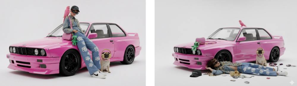 为了证明这一点,团队展示了另一个酷炫的例子:「把主体变成五种不同的1980年代美式商场风。」