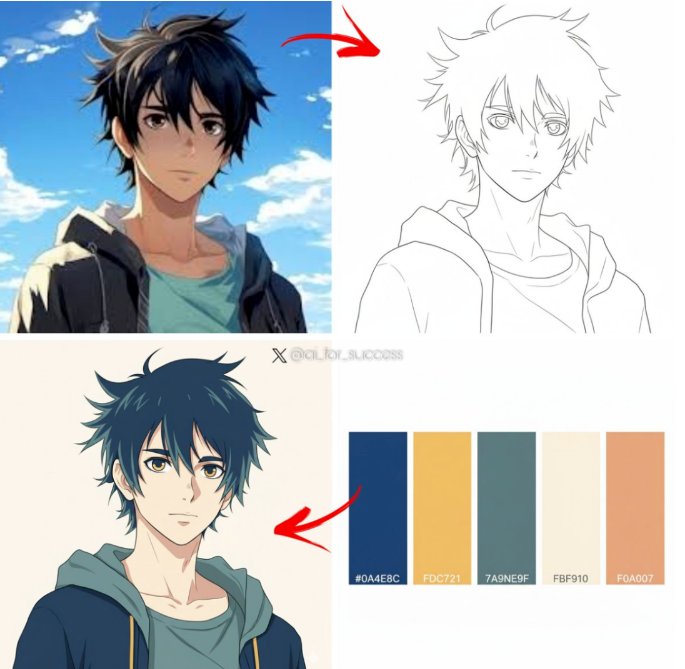 甚至,还可以「逆向」P图,首先把原图改为黑白色线框,然后再选择自己喜欢的颜色,最后给图片重新上色。