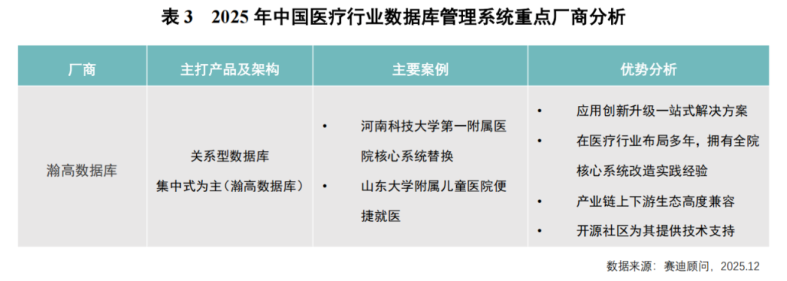 报告显示,随着医疗数据规模的持续扩大与数据价值挖掘需求的日益增强,医疗行业信息化已成为提升服务质量和运营效率的核心路径。在国家卫生健康委员会等主管部门系列政策的推动下,医院电子信息化建设不断提速,新一代信息技术与医疗业务深度融合。目前,众多大型医院已实现收费、药品、诊疗等关键业务的信息系统化管理。尤其在医疗应用创新推进过程中,国内数据库的适配能力、迁移方案及实际应用成效备受关注,应用场景持续拓宽。