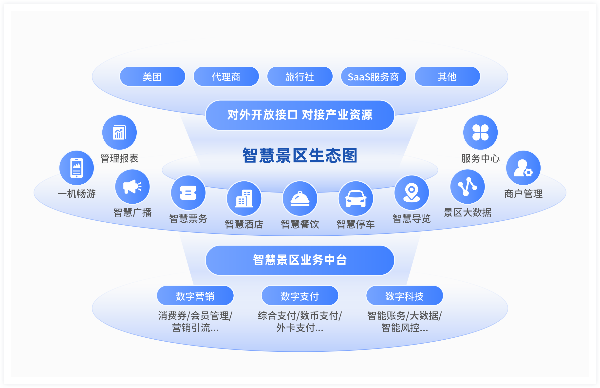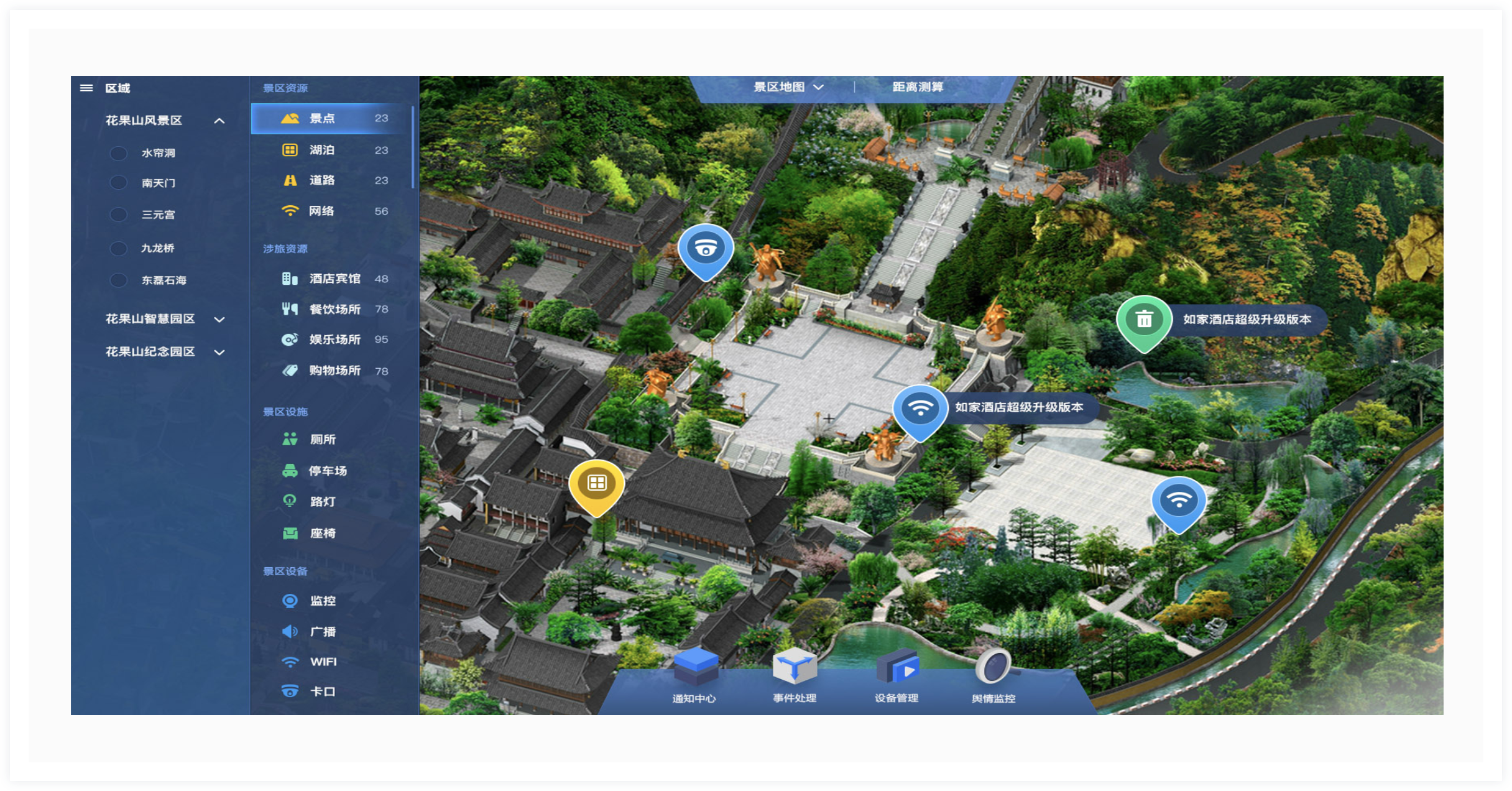 聚焦传统景区发展痛点,以数字化、网络化、智能化为特征推进智慧景区与智慧旅游创新发展,将5G、大数据、云计算、人工智能、虚拟现实、增强现实等新技术应用智慧景区的建设之中,围绕新时代智慧景区在游客体验、景区管理、景区运营等多维度的需求,充分结合景区旅游资源禀赋特色,创意智慧网红打卡、智慧夜游互动、智慧游乐体验等多元主题场景形成景区全新的吸引力结构,以智慧景区“一机游”和智慧景区管理系统为抓手,推动智慧景区智慧化、数字化管理与运营,同时,增加智慧景区服务设施,全面提升景区服务能级,助力景区创建升A和智慧化升级,赋能智慧景区高质量发展。